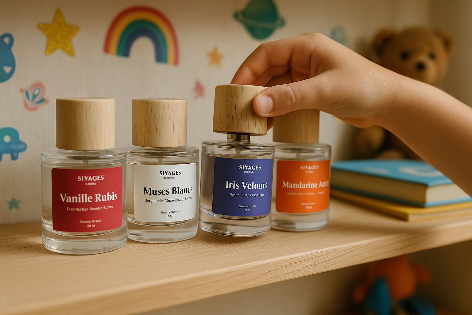 Nos parfums sont pensés pour accompagner l’enfant dans ses émotions, ses rituels et son autonomie. Des repères doux, durables et personnels.